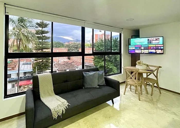 Featuring views of the city, the 35 m² 42 Modern Loft Top Location Laureles Medellin apartment is situated in the Laureles - Estadio district, around a 20-minute walk from Ecotourism Park Arvi. Guests can make use of Wi-Fi for both business and leisure purposes.